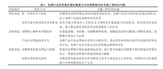 为了实现上述发展目标,发酵行业需要解决的关键工程科技问题如表4所示。