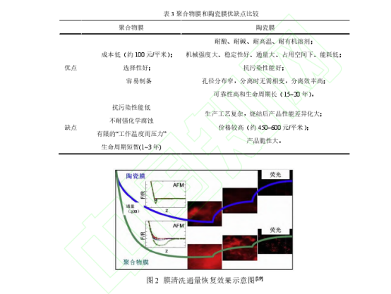 可见,陶瓷膜抗污性能、渗透通量、清洁效率、使用寿命等方面优于聚合物膜,随着陶瓷膜生产成本的降低,更有利于应用于生物制造领域这种发酵液成分复杂、粘度大等特点的物料。